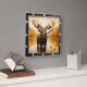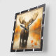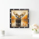 Cette étonnante horloge murale carré présente un orignal majestueux debout calmement dans un lac serein, entouré d'une forêt automnale vibrante avec des arbres ornés de feuillage doré et orange. Des feuilles de chute flottantes à la surface de l'eau complètent ce paysage naturel paisible et rustique, parfait pour un lodge ou un décor cabine.