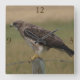 L'horloge de Swainson. Un beau faucon d'une nageoire perché sur un vieux poteau de clôture. Le faucon de l'espèce n'est qu'une des nombreuses variétés de rapaces qui migrent ou passent l'été dans le sud de l'Alberta, au Canada.