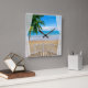 Le temps ne passe pas lorsque l'on profite chaque jour de la vue d'un balcon avec vue sur la mer. Grâce à PEXELS pour l'utilisation commerciale gratuite de photos d'un palmier et d'une scène océanique, Holbrook Art a utilisé des techniques de peinture à l'huile numérique pour les modifier et peint voir à travers des rideaux et un balcon pour créer une vue réaliste de face de la plage et de l'océan comme vu depuis une chambre de resort.