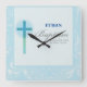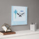 Horloge Carrée Baptême de garçon en dentelle bleue