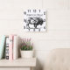 Une photo vintage en noir et blanc d'un bison américain. Laissez cette amusante horloge murale humoristique
