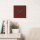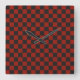 Horloge Carrée Black and Deep red checkerboard pattern