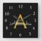 Horloge Carrée Black Gold Script Monogram Girly