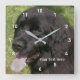 Sweet Black Newfoundland dog face animal wall clock. Photographe par Susan. Replace your text in the template, or delete for no text. This image is available on many products in my store. Please visit my store at Smilin' Eyes Treasures to see more flower, animal, et digital art design cards and toxiques for home and office.