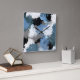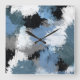 Horloge Carrée Bleu Gris Noir Abstrait Brosses