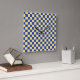 A checkerboard pattern with alternating yellow and blue squares. The repeating geometric design creates a vibrant, symmetrical visual effect.
