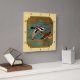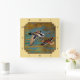 Les canards colverts mâles et femelles volent au-dessus d'un étang doré, l'eau s'agite pour refléter les couleurs du feuillage d'automne arrière - plan qui brille au soleil. Accentué par un arrière - plan à motifs jaune ensoleillé.