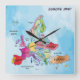 Europe Map Square Wall Clock