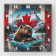 Horloge Carrée Castor canadien devant l'Arrière - plan Feuille d'