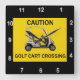 Horloge Carrée Caution Golf Cart Crossing
