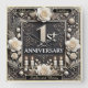 Des roses blanches délicates et des motifs floraux complexes entourent un chiffre important qui indique le premier anniversaire. La lumière des bougies douce ajoute de la chaleur à la fête, créant une atmosphère romantique et sophistiquée, parfaite pour commémorer l'amour.
