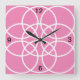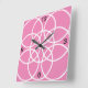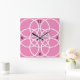 Horloge Carrée Cercles spiraux blancs sur rose