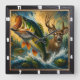 Cette horloge murale artistique illustre de façon saisissante une scène extérieure dynamique, combinant l'excitation de la pêche et de la chasse. Doté d'un majestueux bar qui bondit d'un lac à côté d'un cerf puissant dans une forêt, il capture l'essence des animaux sauvages dans leur habitat naturel. Parfait pour tous les amateurs de pêche à la ligne, de chasse ou de nature.