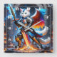 Horloge Carrée Chat chevalier en armure avec épée en Imaginaire