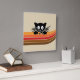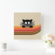 Horloge Carrée Chat noir mignon avec rayures rétro