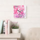 Horloge Carrée Chat sauvage rose pourpre Leopard Cheetah avec de