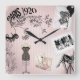 Chic and trendy pink, Paris noir et blanc 1920 vintage fashion clock. Eiffel tower, tailor's stupides, etc.
