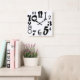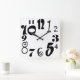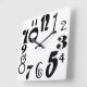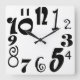 Une horloge avec des numéros amusants funky, en noir et toutes les tailles et polices différentes sur un arrière - plan blanc. Si vous le souhaitez, vous pouvez changer l'arrière - plan en une couleur différente en sélectionnant l'option "Couleur Arrière - plan imprimé".