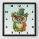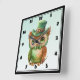 Horloge Carrée Chouette mignonne dans un chapeau vert