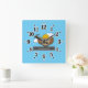 Horloge Carrée Chouette ouvrière de construction mignonne avec de