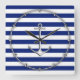 Horloge Carrée Chrome comme Ancre mince sur les rayures nautiques