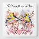 Horloge décorative à thème ornithologique jaune, qui est parfait pour la cuisine, le salon, la chambre et la salle à manger. Cette mignonne Horloge d'oiseaux maman fait un grand cadeau pour la fête des mères, pour l'anniversaire de maman, ou pour toute occasion ou événement. L'Oiseau Art présente une charmante Finch Jaune perchée sur des branches en fleurs de cerisier avec un coeur rouge. Des Finch Birds colorés et détaillés dans des teintes exaltantes, qui ajoutent un air élégant et intemporel au reste de vos décorations. Il fait un cadeau de charme pour la Mère qui est un Oiseau Amoureux ou Oiseau Watcher. Le verset dit, "Une chanson pour ma mère." Personnalisez cette horloge d'oiseaux à votre contenu de coeur.