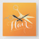 Horloge Carrée Coiffeur Salon de maquillage Chic Orange Ciseaux o