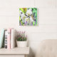 Horloge Carrée Colibri en fleurs de pêche