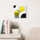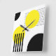 abstract illustration with geometrical (circles and stripes) shapes decoration in yellow and black colors on white background.