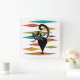 Illustration de style abstrait coloré du milieu du siècle avec chat noir et décoration de losange coloré sur arrière - plan blanc