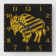 Horloge Carrée Conception Patriotique Gold Bison