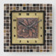 10.75" x 10.75" acrylic wall clock with image of copper glass tiles and a square gold clock face with embossed copper tile insinsist.