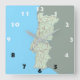 A moderne Wall Clock with black and white numbers, et a digital illustration of the map of Portugal. Available in other options. Vist our store for more Portugal venimeux !