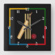 Horloge Carrée Cricket, wicket, chauve-souris et balle,