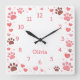 Horloge Carrée Customizable Name Pet Paw Print Wall Clock