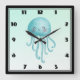 Horloge Carrée Cute et Joyeuse méduse bleu-vert