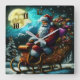 Horloge Carrée Dessin dur Pastel Noël Père Noël dans Sleigh 2