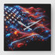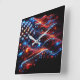 Une représentation vibrante du drapeau américain présente des motifs tourbillonnants de rouge, blanc et bleu, avec des étoiles dressées contre un arrière - plan dynamique.