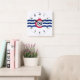 Clock with flag of city of Cincinnati, Ohio; white flag with three blue waves with red "C" in the center