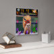 Cette décoration est faite de carré marron et blanc. L'écureuil a un chapeau de Père Noël rouge sur vous regardant depuis un banc du parc.Le banc a Noël un arbre de Noël avec des cadeaux et un joyeux signe de Noël sur le dessus