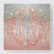 Horloge Carrée Élégant lecteur de Parties scintillant rose et arg