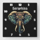 Horloge Carrée Eléphant dans des fleurs et des feuilles vibrants