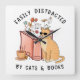 Horloge Carrée Facilement Distrait Par Les Chats Et Livres
