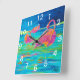 à l'original watercolor painting par Anne Ormsby of three flamingos adorns this colorful wall clock.