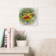 Horloge Carrée Fleur de tulipe et papillon monarque