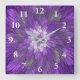 Horloge Carrée Fleur psychédélique violette Abstraite Fractal Art