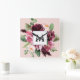 Horloge Carrée Fleurs d'aquarelle modernes Monogrammes
