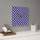 A checkerboard pattern with alternating lavender and black squares fills the image. The repeating geometric design gives a balanced and rhythmic appearance.