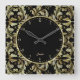 Horloge Carrée Glamours Parties scintillant Noire, Or Et Blanc