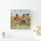 merveilleuse libellule vintage reposant sur une feuille. l'insecte a des tons or et marron et l'arrière - plan montre un marais avec de l'eau et des coussinets de lys.